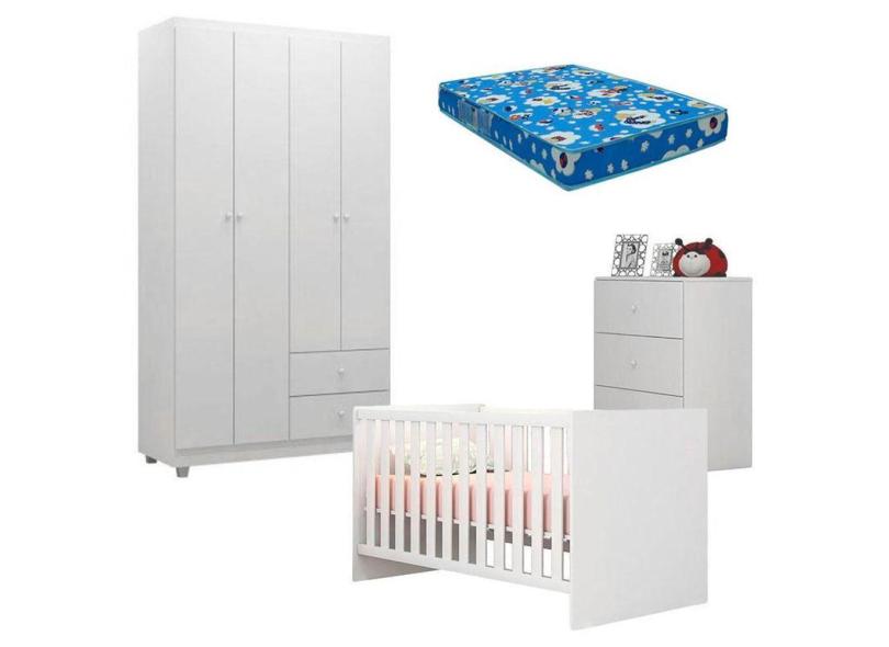 O menor preço encontrado no Brasil para Quarto De Bebê Louise 4 Portas Com Berço Doce Sonho 100 Branco Brilho E Colchão - Ajl atualmente é R$ 1.173,00.