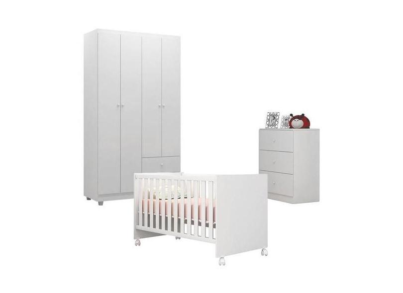 Quarto de Bebê Louise 4 Portas com Berço Doce Sonho 100 Rodízio Branco