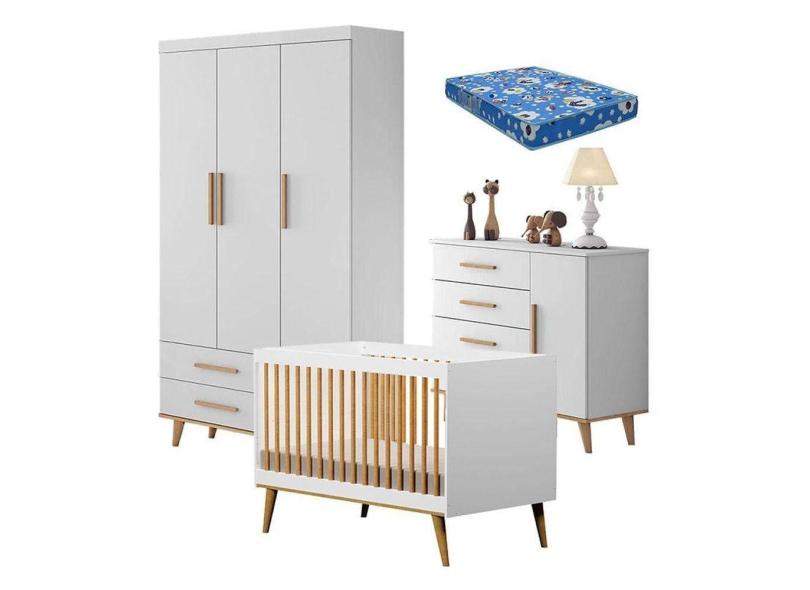 O menor preço encontrado no Brasil para Quarto De Bebê Ludmila Com Berço Ligia Branco Acetinado Bétula Com Colchão Ortobom Móveis atualmente é R$ 1.929,83.