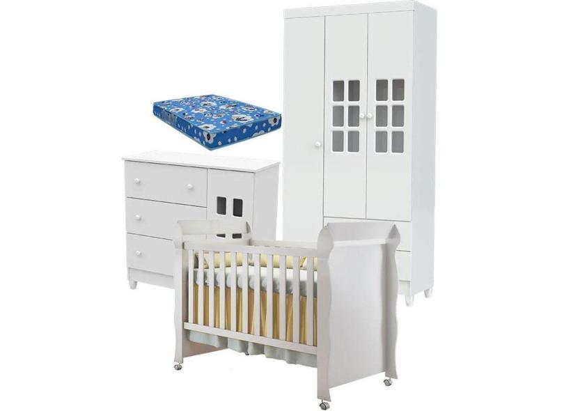 O menor preço encontrado no Brasil para Quarto De Bebê Mariah 3p Com Berço Mirelle Branco Brilho Com Colchão - Carolina atualmente é R$ 1.293,47.