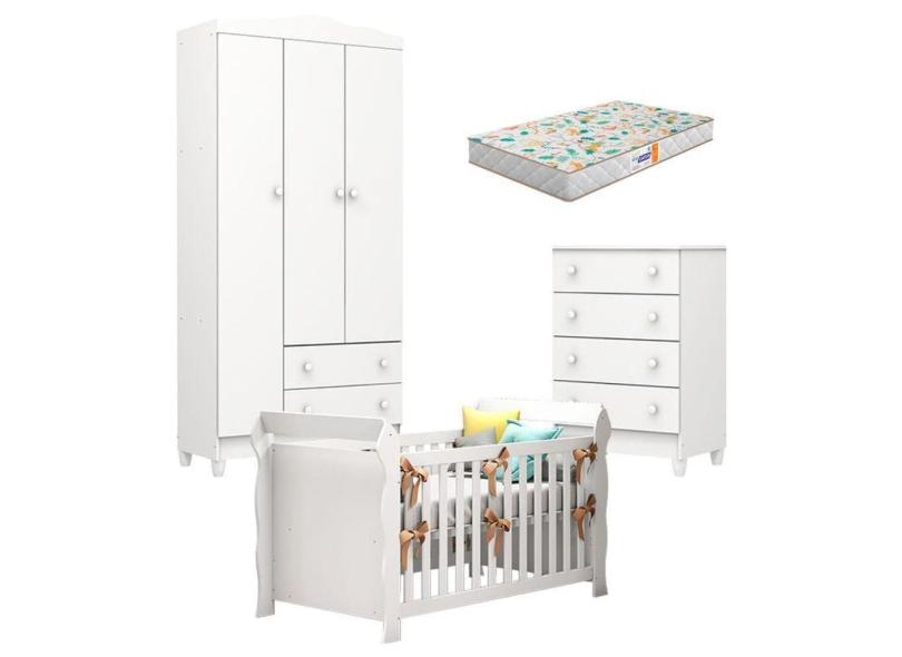 O menor preço encontrado no Brasil para Quarto de Bebê Mel Flat com Berço Americano Lara Branco Brilho com Colchão Gazin - Carolina atualmente é R$ 1.195,72.