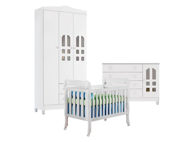 Quarto de Bebê New Selena 3 Portas com Berço Lila e Cômoda Gran Selena Branco Brilho – Carolina Móveis
