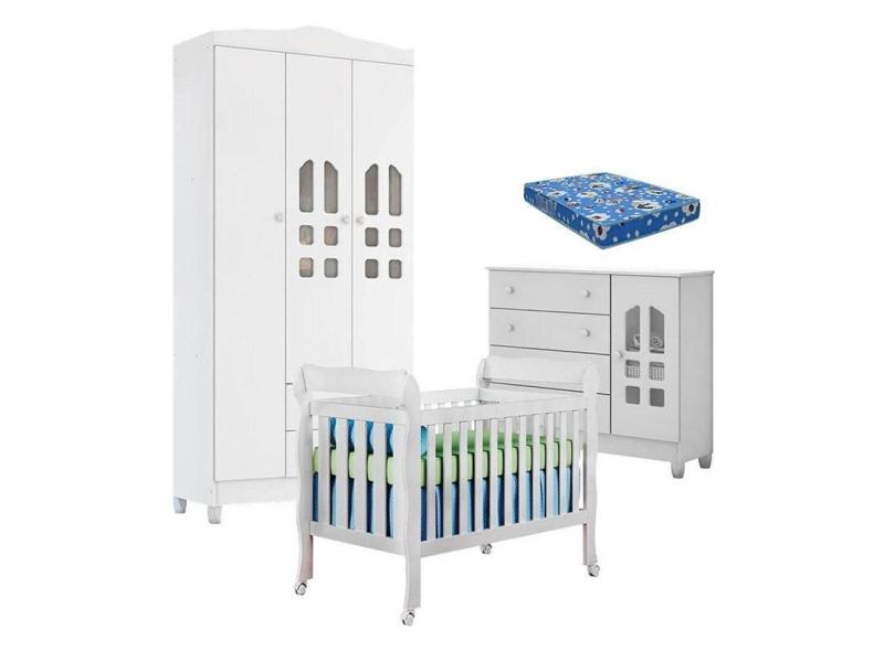 Quarto de Bebê New Selena 3 Portas com Berço Lila e Cômoda Selena Branco Brilho e Colchão Ortobom – Carolina Móveis