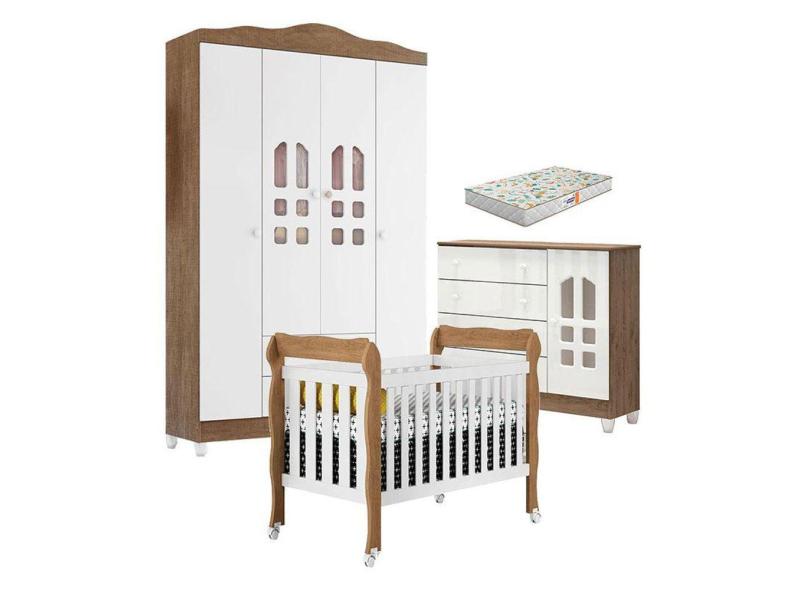 O menor preço encontrado no Brasil para Quarto de Bebê New Selena 4 Portas com Berço Lila e Cômoda Selena Branco Acetinado Amadeirado e Colchão Gazin - Carolina Móveis atualmente é R$ 1.460,70.