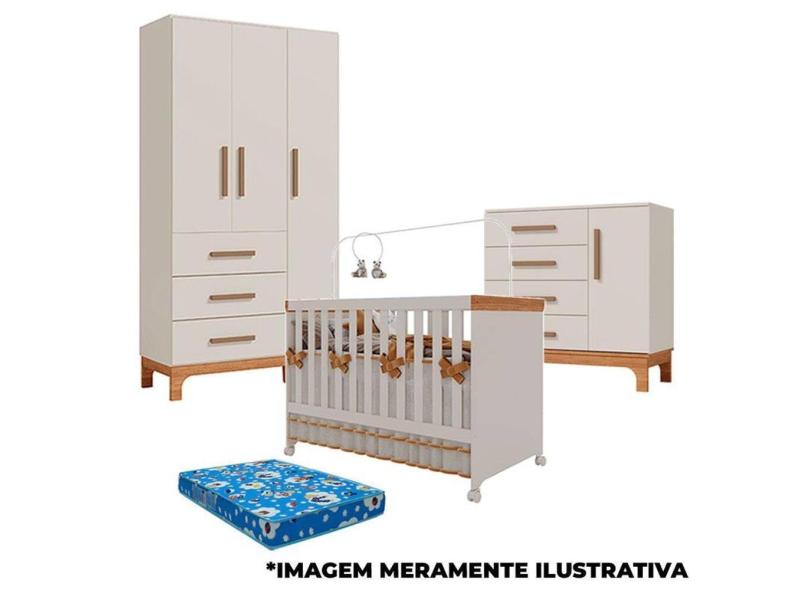 Quarto de Bebê Pega Pega e Berço Americano Antonella Off White Caramelo com Colchão - Canaã