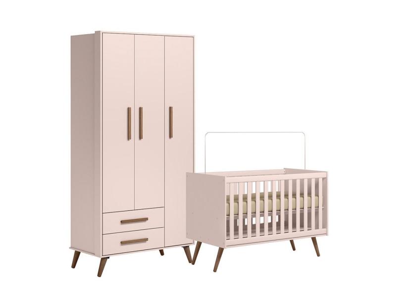 Quarto de Bebê Qencanto com Roupeiro e Berço Qmovi Rosa