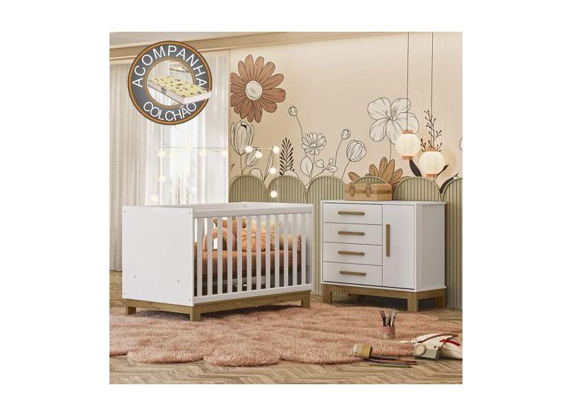 Quarto de Bebê Qencanto Slim com Cômoda 4355 e Berço 4315 Qmovi Branco