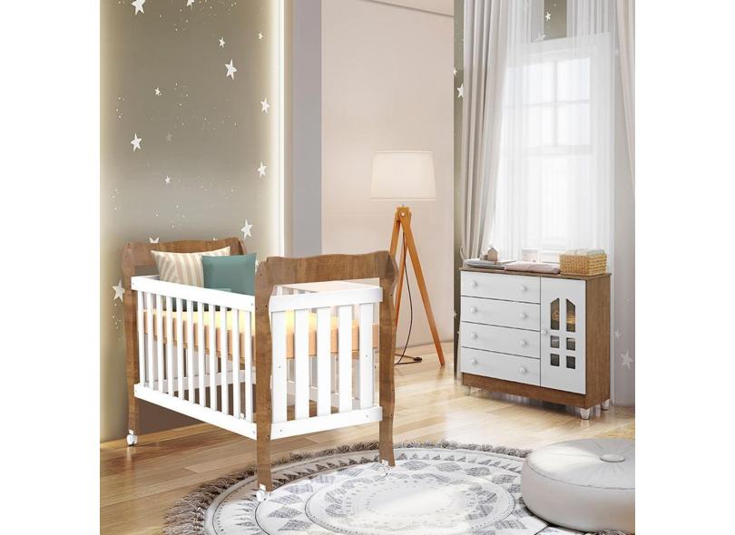 Quarto de Bebê Selena Berço 3 em 1 Lila Cômoda Infantil com Porta Branco Amadeirado Carolina Baby