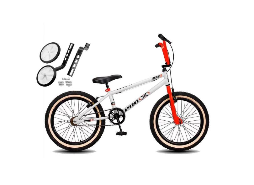 O menor preço encontrado no Brasil para Bicicleta Aro 20 BMX PRO X S1 Faixa Bege V-Brake e Rodinhas-Unissex atualmente é R$ 878,82.