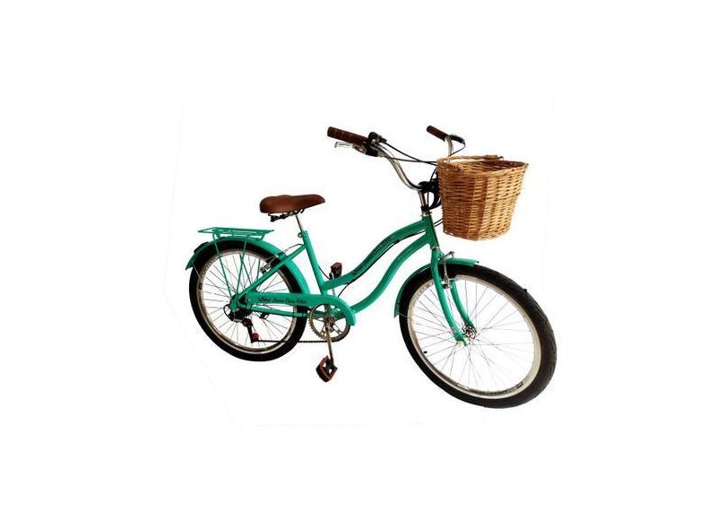 Bicicleta Aro 24 Retrô Vintage feminina com cesta vime Verde - Maria C