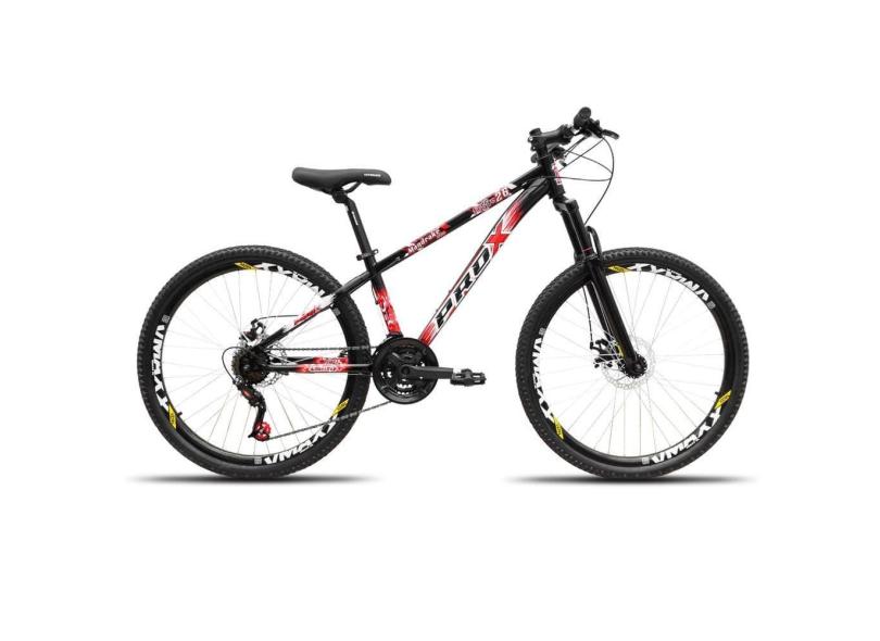 Bicicleta aro 26 Freeride PRO X Mandrake Hiten 21 Velocidades Freio a Disco Aros Vmaxx Preto Adesivo Branco e Vermelho