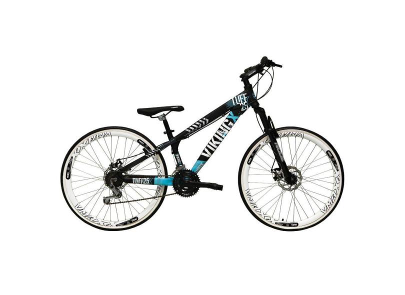 Bicicleta Aro 26 Preto/azul 21v Freio A Disco Aros Branco
