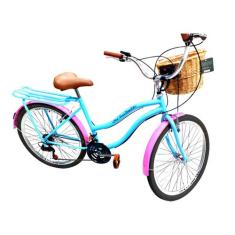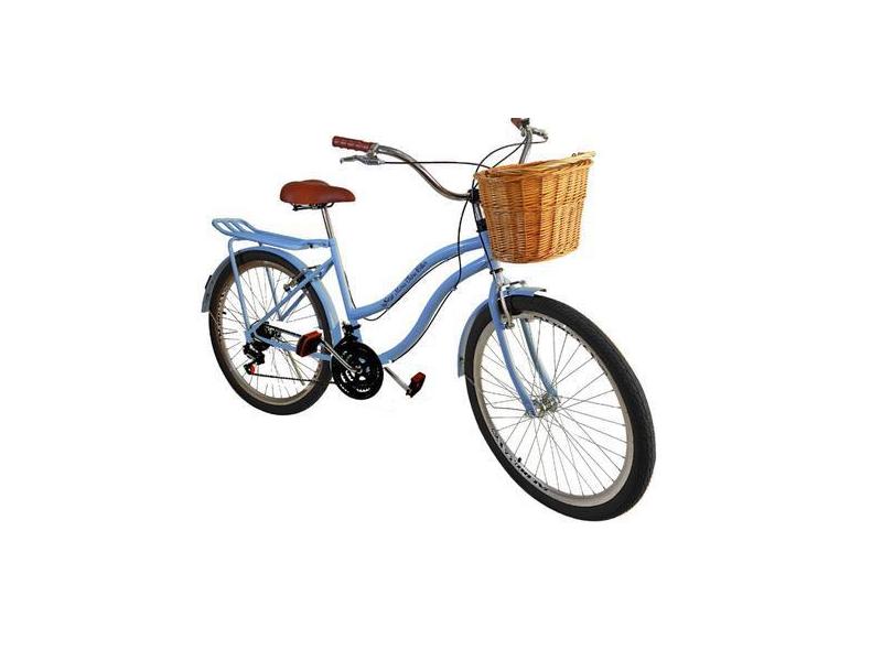 Bicicleta Aro 26 Retrô 18 Marchas Cesta Vime Bagageiro Azul - Maria Cl