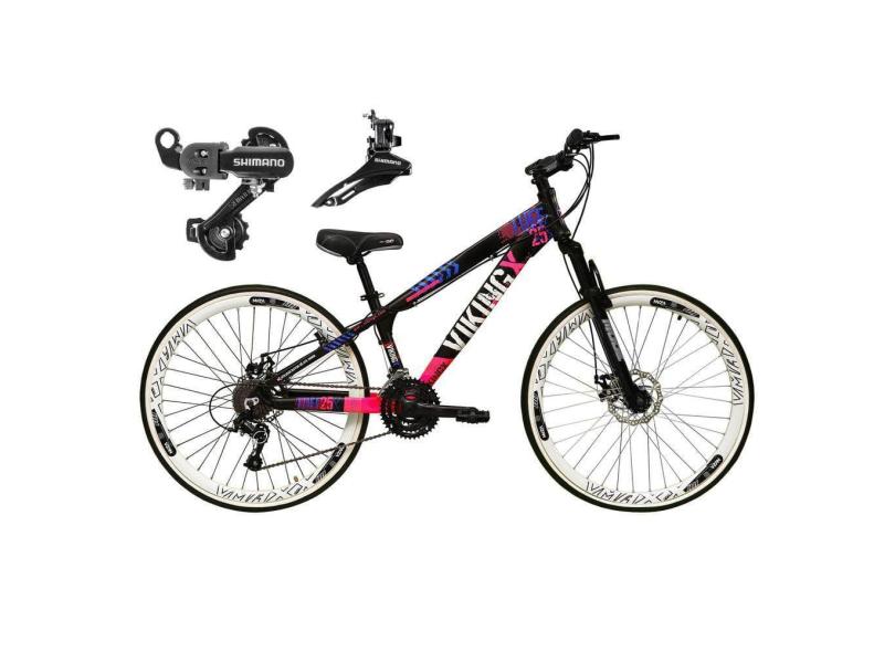 O menor preço encontrado no Brasil para Bicicleta Aro 26 Vikingx Tuff 21v Alumínio Câmbio Shimano Freio a Disco Aros Vmaxx Branco - Preto\Rosa X25 atualmente é R$ 3.498,00.