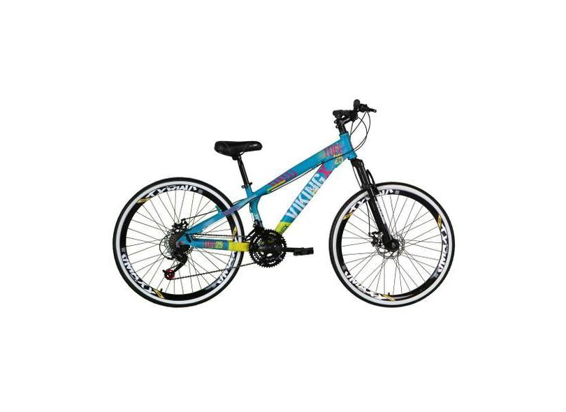 Bicicleta Aro 26 Vikingx Tuff Azul/Amarelo 21V Alumínio Freio Hidráuli