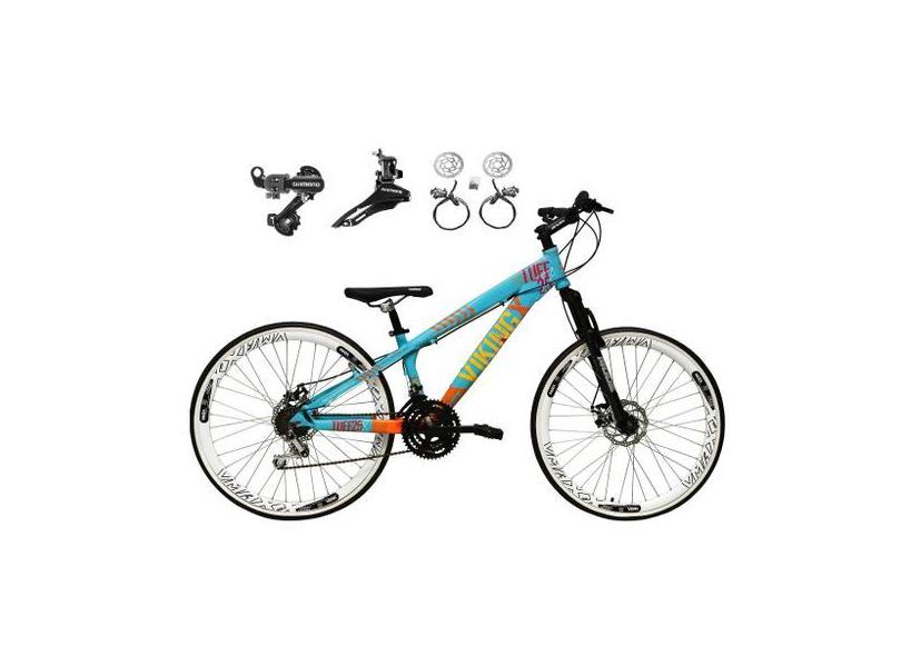 Bicicleta Aro 26 Vikingx Tuff Azul/Laranja 21v Alumínio Câmbios Shiman