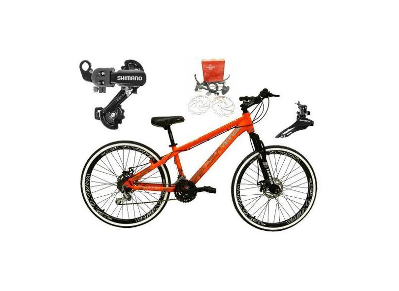 Bicicleta Aro 26 Vikingx Tuff Laranja X30 21v Alumínio Câmbios Shimano