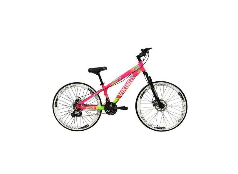 Bicicleta Aro 26 Vikingx Tuff Rosa/Verde 21v Alumínio Freeride Freio a