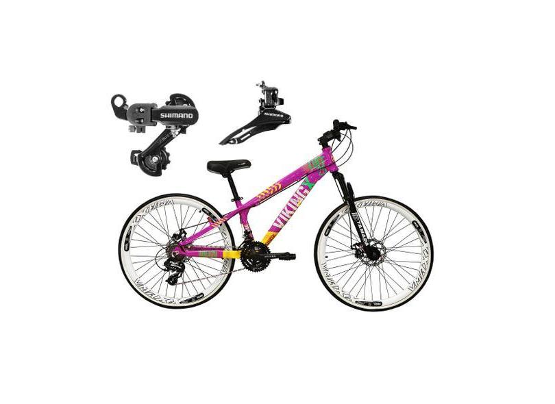 Bicicleta Aro 26 Vikingx Tuff Roxo/Amarelo 21V Alumínio Câmbio Shimano