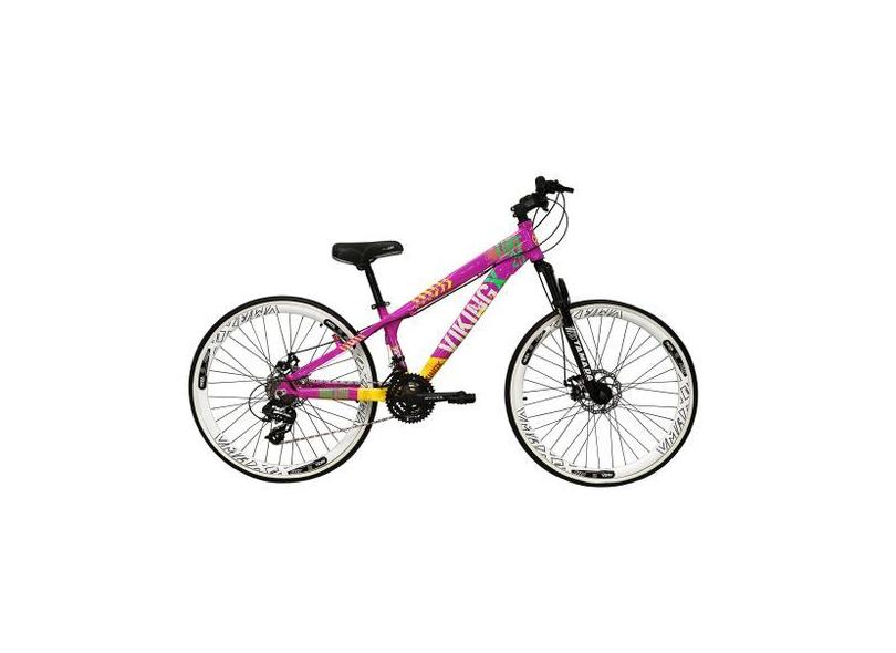 Bicicleta Aro 26 Vikingx Tuff Roxo/Amarelo 21V Alumínio Freeride Freio