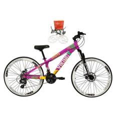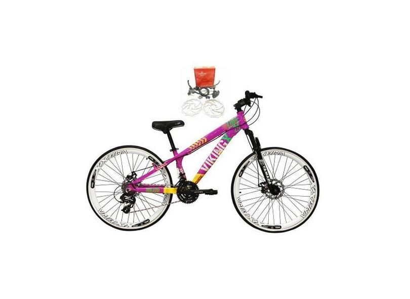 Bicicleta Aro 26 Vikingx Tuff Roxo/Amarelo 21V Alumínio Freio A Disco