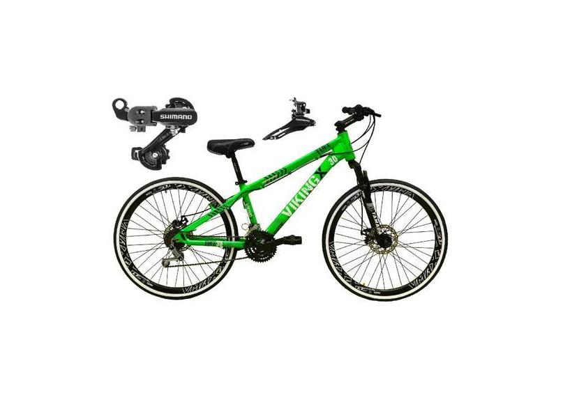 Bicicleta Aro 26 Vikingx Tuff Verde 21V Alumínio Câmbio Shimano Freio