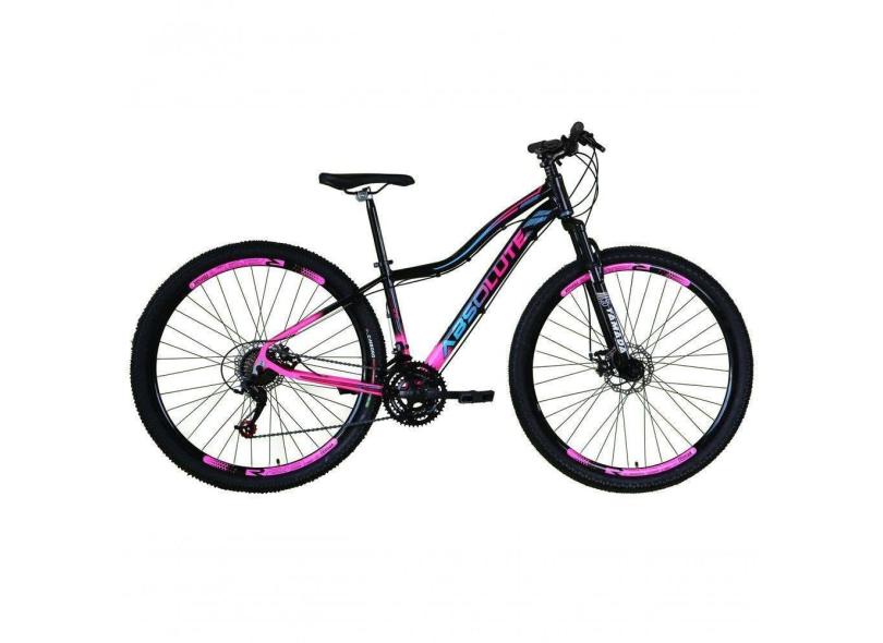 O menor preço encontrado no Brasil para Bicicleta Aro 29 Absolute Hera Feminina Alumínio 21v Freio A Disco Garfo Suspensão Preto-rosa 15 atualmente é R$ 887,40.