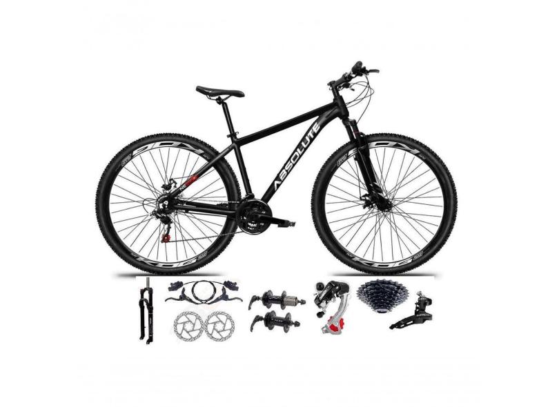 O menor preço encontrado no Brasil para Bicicleta Aro 29 Absolute Nero 5 Câmbios Shimano 24v K7 Freios Hidráulicos Garfo Trava - Preto 21 atualmente é R$ 1.715,40.