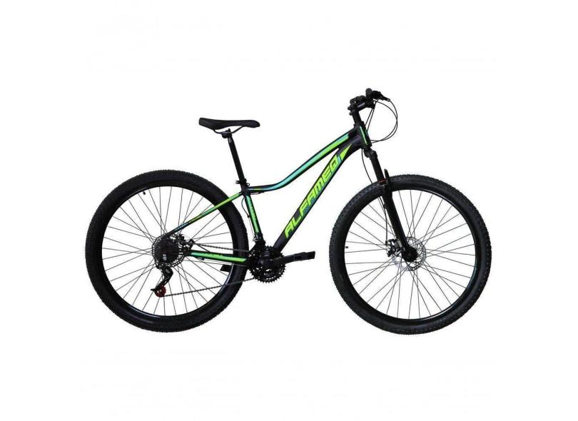 Bicicleta Aro 29 Alfameq Pandora Feminina Alumínio 21v Freio A Disco - Preto-amarelo-verde Tam.17