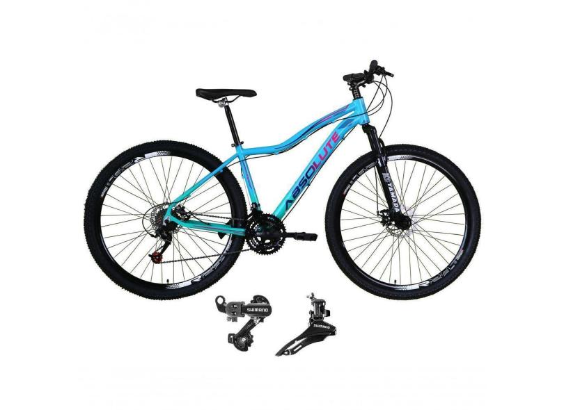 O menor preço encontrado no Brasil para Bicicleta Aro 29 Feminina Absolute Hera Alumínio 21v Câmbios Shimano Suspensão Azul-verde 15 atualmente é R$ 1.330,20.