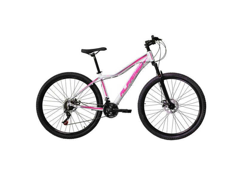 Bicicleta Aro 29 Feminina Alfameq Alumínio 21v Freio A Disco Suspensão Dianteira - Branco/Rosa