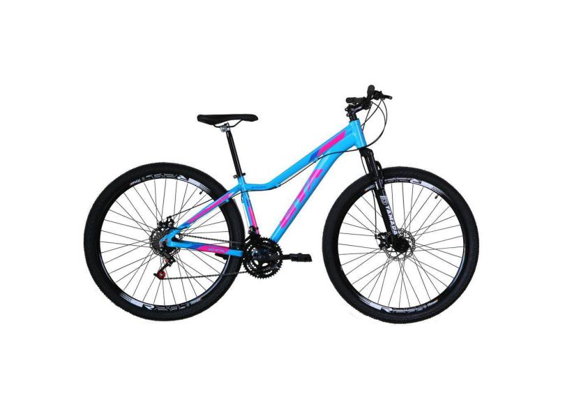 Bicicleta Aro 29 Feminina Gta Start Alumínio 27v Freio a Disco Mecânico Garfo com Suspensão - Azul/Rosa