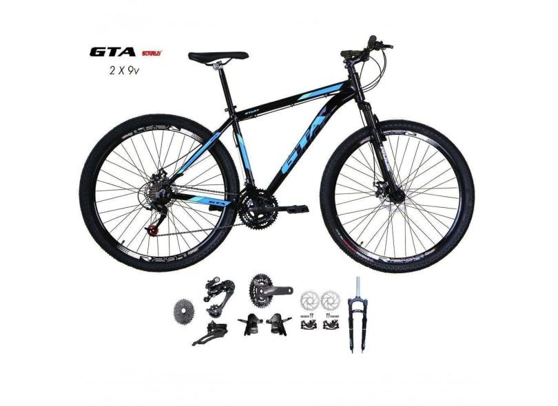Bicicleta Aro 29 Gta Start Kit 2x9 Gta Sunrun Freio Disco K7 11/36 Pedivela 24/38d Garfo Com Trava - Preto/azul Tam.19