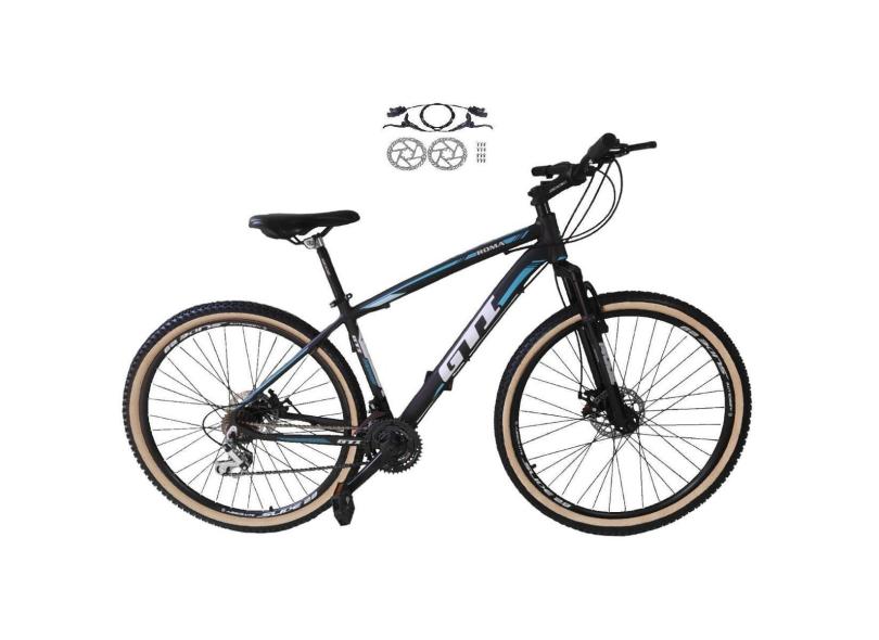Bicicleta Aro 29 Gti Roma 21v Alumínio Freios a Disco Hidráulicos Suspensão Dianteira Pneus Bege-Unissex