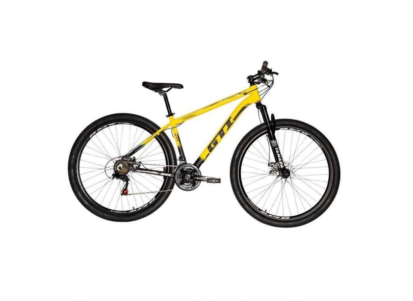 O menor preço encontrado no Brasil para Bicicleta Aro 29 Gti Roma Alumínio 21v Freio A Disco Garfo Suspensão - Amarelo-preto Tam.19 atualmente é R$ 1.059,30.