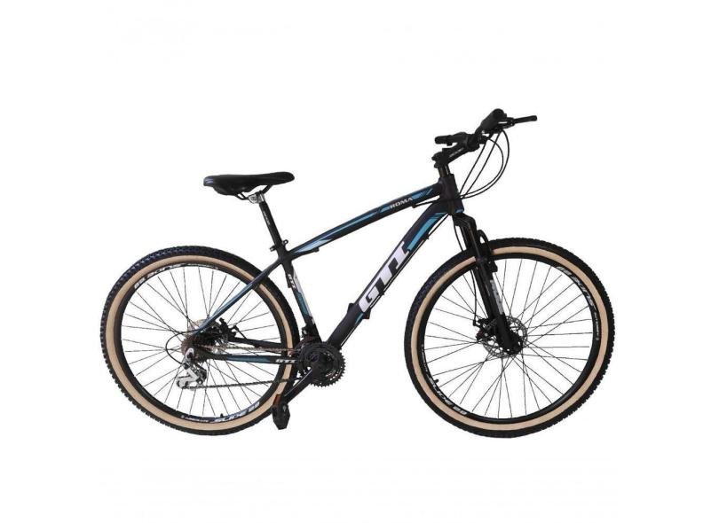 Bicicleta Aro 29 Gti Roma Alumínio 21v Freio A Disco Garfo Suspensão Pneu Faixa Bege - Preto-azul Tam.15