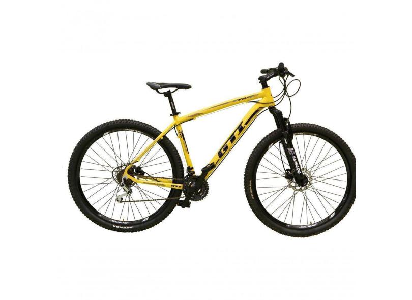 O menor preço encontrado no Brasil para Bicicleta Aro 29 Gti Roma Alumínio 21v Freio A Disco Hidráulico Garfo Com Suspensão Pneu Faixa - Amarelo Tam.17 atualmente é R$ 1.092,60.