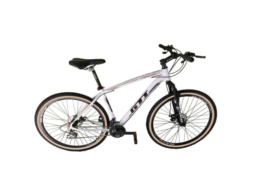 O menor preço encontrado no Brasil para Bicicleta Aro 29 Gti Roma Alumínio 27v Freio a Disco Mecânico Garfo com Suspensão Pneu com Faixa Bege - Branco atualmente é R$ 1.254,00.