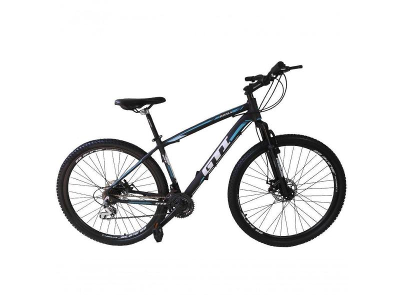 Bicicleta Aro 29 Gti Roma Alumínio 27v Freio Disco Mecânico Garfo Suspensão - Preto/azul Tam.17