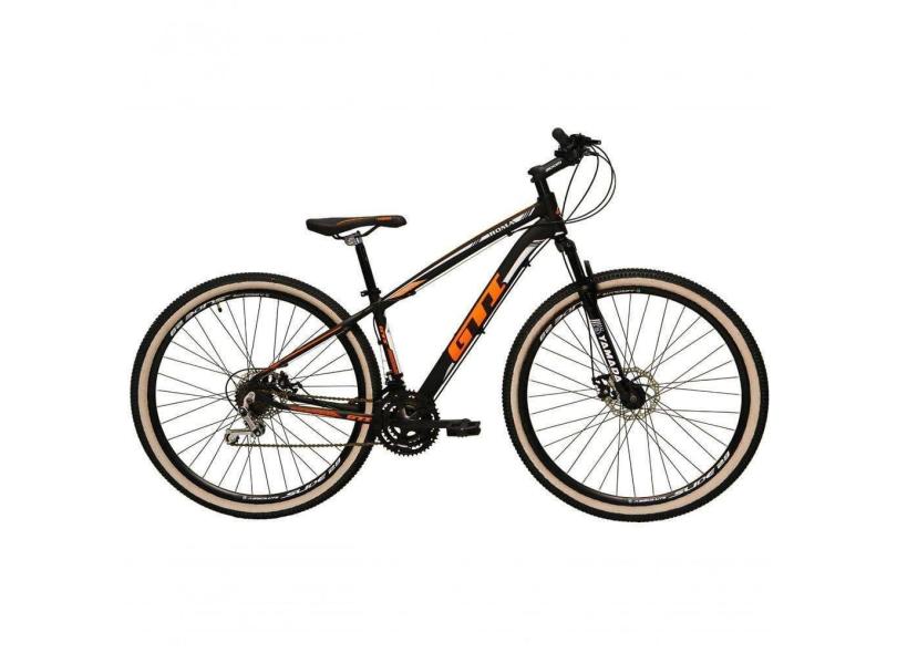 Bicicleta Aro 29 Gti Roma Alumínio 27v Freio Disco Mecânico Pneu Faixa Bege - Preto-laranja Tam.15