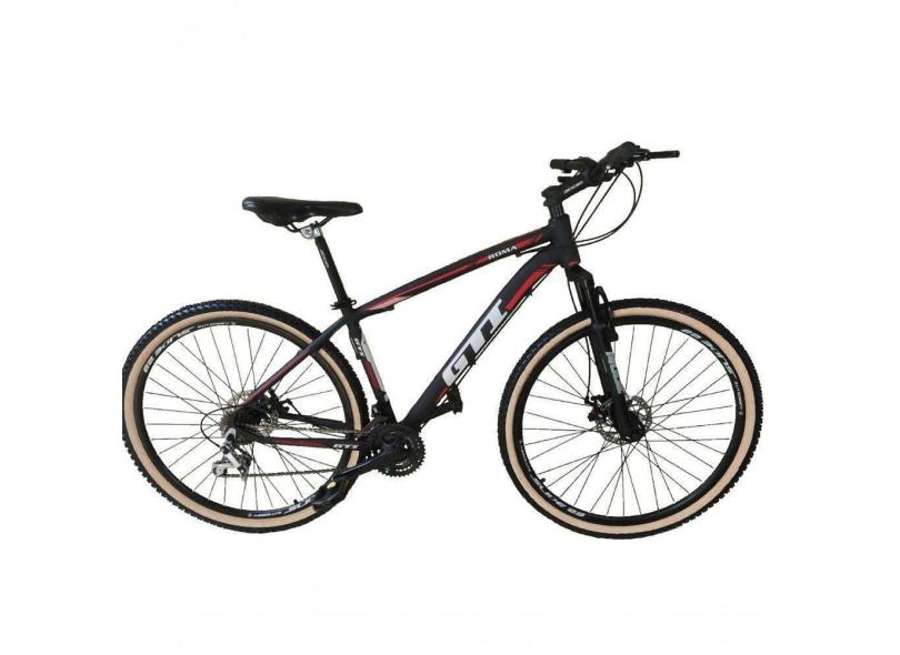 O menor preço encontrado no Brasil para Bicicleta Aro 29 Gti Roma Alumínio 27v Freio Disco Mecânico Pneu Faixa Bege - Preto-vermelho Tam.15 atualmente é R$ 1.096,20.