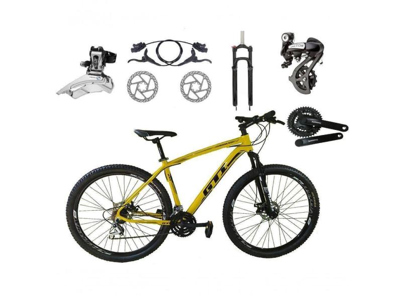 Bicicleta Aro 29 Gti Roma Câmbios Shimano Altus 24v K7 Freios Hidráulicos Garfo Trava - Amarelo Tam.15