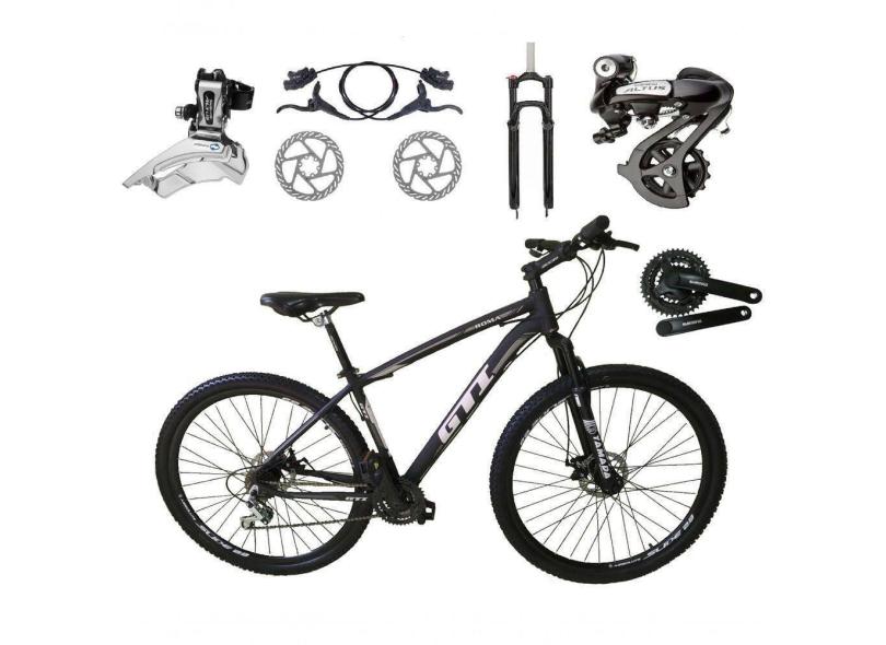 Bicicleta Aro 29 Gti Roma Câmbios Shimano Altus 24v K7 Freios Hidráulicos Garfo Trava - Preto/cinza Tam.19