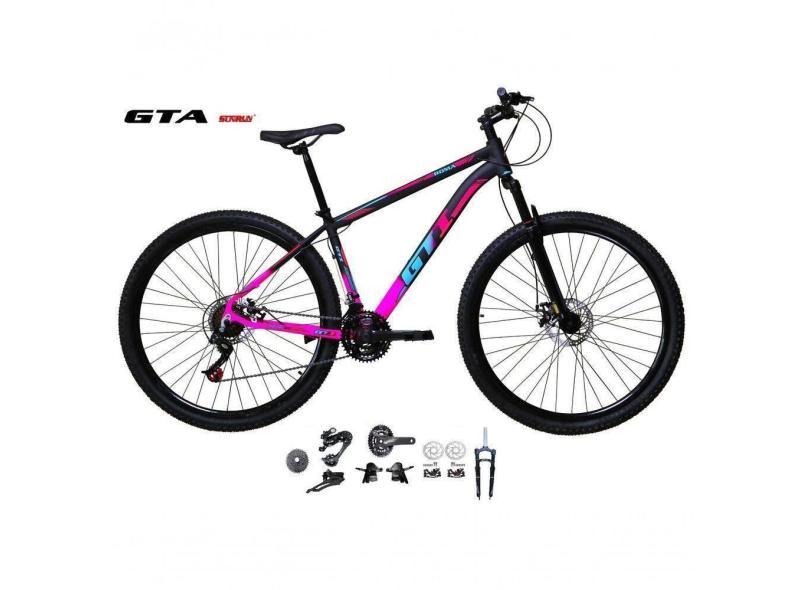O menor preço encontrado no Brasil para Bicicleta Aro 29 Gti Roma Kit 2x9 Gta Sunrun Freio Disco K7 11/36 Pedivela 24/38d Garfo Com Trava - Preto/rosa Tam.17 atualmente é R$ 1.386,90.