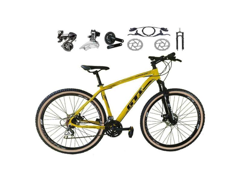 O menor preço encontrado no Brasil para Bicicleta aro 29 Gti Roma Shimano Altus 24V Freio a Disco Hidráulico Garfo com Trava Pneu com Faixa Bege - Amarelo atualmente é R$ 1.867,00.