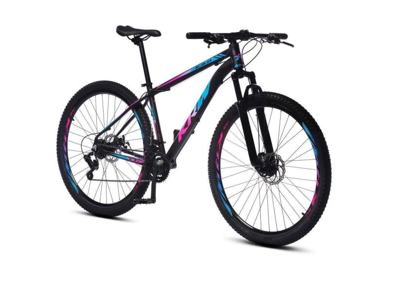 Bicicleta Aro 29 Krw Alumínio 24 Vel Freio A Disco X52 Cor:preto/rosa E Azul;tamanho Quadro:17 Preto/rosa E Azul