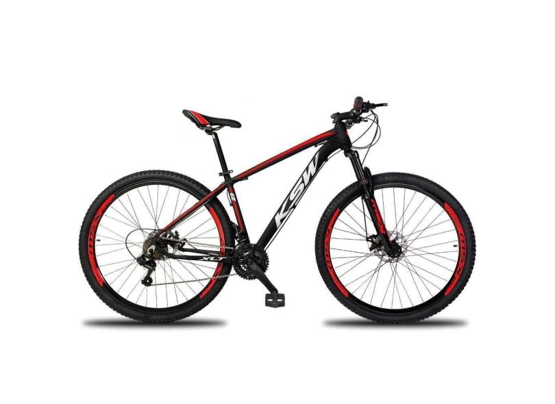 Bicicleta Aro 29 Ksw 1x9v Freio Hidráulico, Trava E K7 11-40 - Preto-vermelho E Branco - 21"