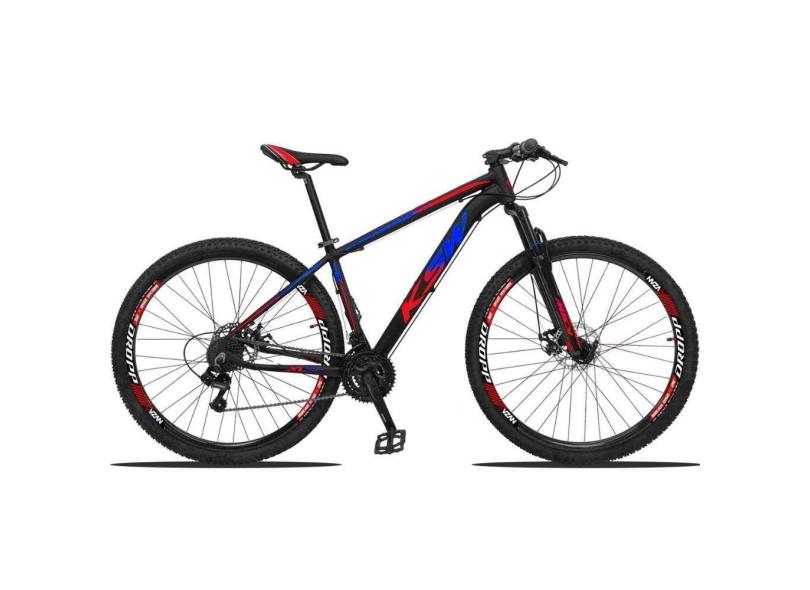 Bicicleta Aro 29 Ksw 21 V Shimano Freio Hidraulico-trava-k7 - 21" Preto-Azul E Vermelho