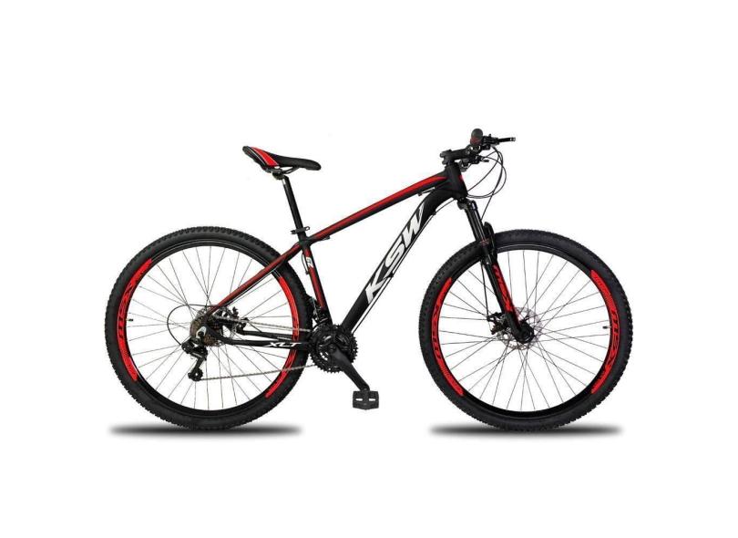 Bicicleta Aro 29 Ksw 24v Tourney Freio Hidraulico Trava E K7 - Preto-vermelho E Branco - 19"