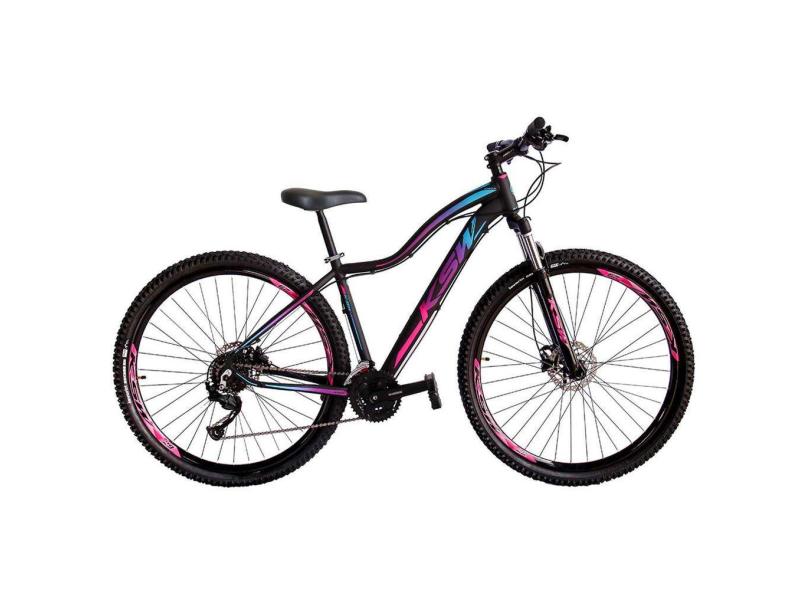 Bicicleta Aro 29 KSW MWZA 2020 Feminina 27v Hidráulico K7 Preto com Rosa e Azul 17